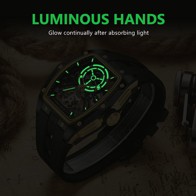 Alcuni orologi cercano di mimetizzarsi. L'MF0603G si rifiuta di farlo. Con un'audace cassa tonneau, un quadrante completamente scheletrato e un fondello in vetro che espone il battito del movimento, questo orologio trasforma ogni controllo del polso in un momento. È drammatico, certo, ma è anche abbastanza pratico da essere indossato tutti i giorni.